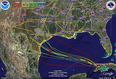 The National Hurricane Center is still very uncertain about Ike and where it is going. Currently the data is showing for a landfall just south of Matagorda Bay (approx 60 miles south of us). Word has it that the storm may take more of a rightward curve in the Gulf ans strengthen leading it to make landfall closer to Matagorda Bay (i.e. not south of it). Definitely keep a close eye. I will keep you posted!