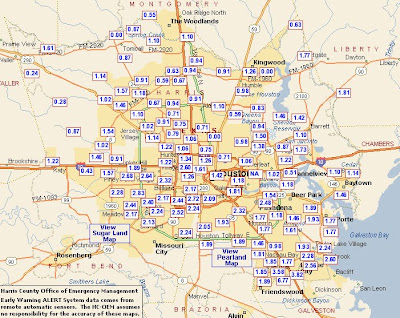 The current rainfall rates from last nights event are shown in the graphic below… (Source: HCOHSEM Website)
