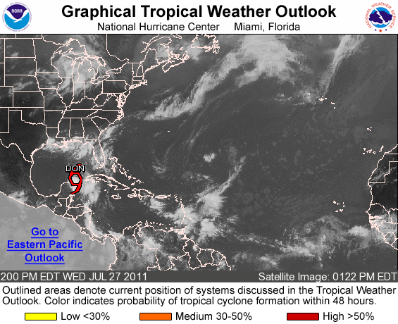 As of approximately 4pm CST, the tropical wave that was to the east of the Mexican peninsula has strengthened and formed into Tropical Storm Don. Current maximum sustained winds are at 40mph, the storm is moving at 12mph to the NW. The storm is expected to make landfall on the Texas coast Friday night or Saturday morning. The main threat with the storm is expected to be rainfall and the potential for high winds. NOAA HPC currently shows only a 2-4in rain potential for the event at this time. This rainfall could be beneficial for many areas of the Texas coast and inland areas that have been in drought conditions for the past few months. This is a fast moving storm that should be monitored closely.