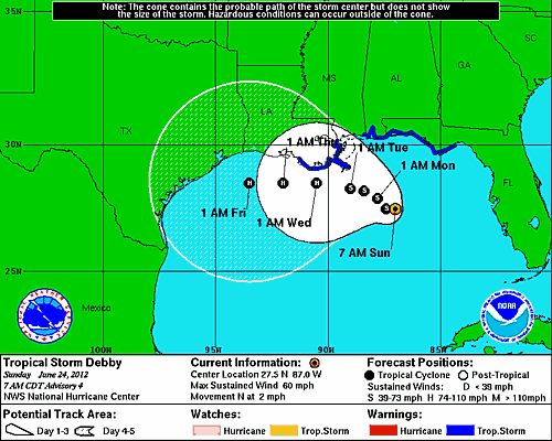 Tropical Storm Debbie has not yet started its turn to the West, however this is forecast to occur over the next 12-24 hours. Current model forecasts of Tropical Storm Debbie show that it now has the potential to become a Category 1 hurricane before landfall.